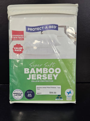 The Bamboo Jersey Pillow protector featuring the Protect-A-Bed® Miracle Layer® is soft and comfortable yet waterproof and breathable and silent. Protecting your Pillow from moderate stains and spills whilst protecting your family from dust mites, mould, bacteria and allergens. You will rest easy knowing that you have a healthy sleep environment and extend the life of your pillow with a Protect-A-Bed Pillow protector.