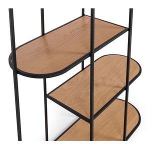 Construction Oak veneers, powder-coated metal, countersunk shelving