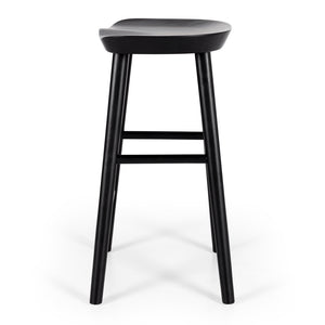 Directly influenced by the ergonomics of a Swiss tractor seat, the Fuji barstool's organic natural finish and sleek profile will find its feet with any interior style. Features stunning natural woodgrain, a comfortable contoured seat, front footrest and slim A-line legs for added strength and a touch of retro flair.