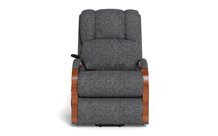 Designed to accommodate smaller room sizes, this softly styled lift chair offers plenty of soothing comfort in both seat and back. Featuring a channel-stitched back and warmly finished open bentwood arms. The perfect choice for those that need a little mobility assistance. Also available as an XL lift chair.