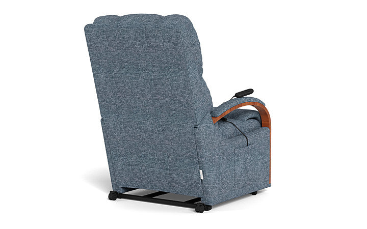 Designed to accommodate smaller room sizes, this softly styled lift chair offers plenty of soothing comfort in both seat and back. Featuring a channel-stitched back and warmly finished open bentwood arms. The perfect choice for those that need a little mobility assistance. Also available as an XL lift chair.