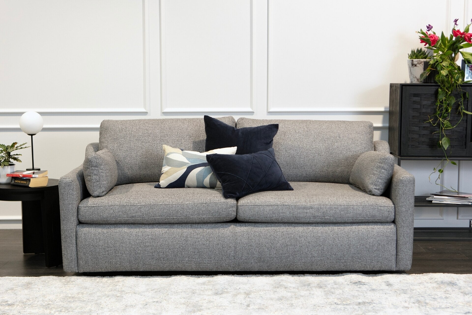 Sleek and functional, the Huntington Sofa Bed offers both contemporary style and practical comfort. With its sloped arms, plush foam and fibre cushions, and bolster pillows, it’s perfect for everyday lounging. When needed, it transforms into a comfortable bed for guests. Explore the Huntington range for other configurations, including 3 Seater and Chaise options.