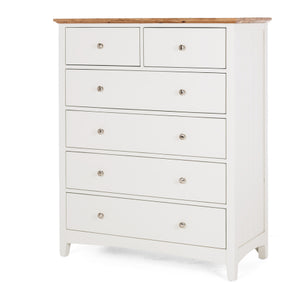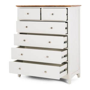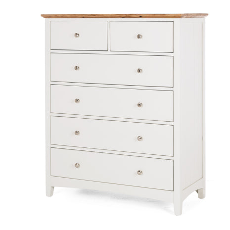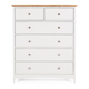 Construction Solid hardwood Acacia framing and MDF panels all coated in a durable satin smooth white finish with a solid oak top. Quality drawer runners and satin stainless steel pulls (that can be easily removed and replaced with something more fun!). The Jessica also comes with safety wall fixtures which we highly recommend you attach to stop budding mountaineers scaling her drawers.