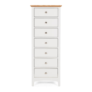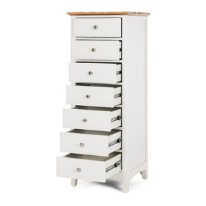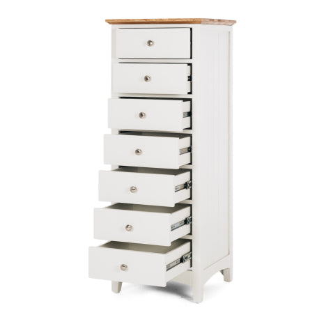 Construction Solid hardwood Acacia framing and MDF panels all coated in a durable satin smooth white finish with a solid oak top. Quality drawer runners and satin stainless steel pulls (that can be easily removed and replaced with something more fun!). The Jessica also comes with safety wall fixtures which we highly recommend you attach to stop budding mountaineers scaling her drawers.