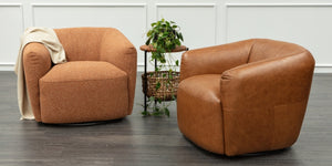 The Luigi Swivel Chair puts a playful spin on the classic tub design, making it a must-have accent piece that lends well to any modern age or more traditional living space. With it’s cushioned, wrap-around silhouette keeping you comfy while you enjoy your morning coffee and its compact footprint making it an ideal solution for cozy corners and smaller spaces, the Luigi is both stylish and practical. Offering smooth 360-degree swivel rotation, the Luigi allows you to have endless conversations at your next get-together, all while staying comfortably nestled in the textural upholstery confines of this design.