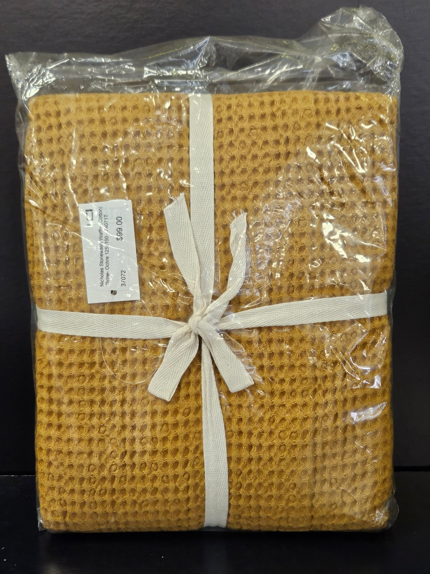 Nicholas Stonewash Waffle (Cotton) Throw - Ochre 125 x 150