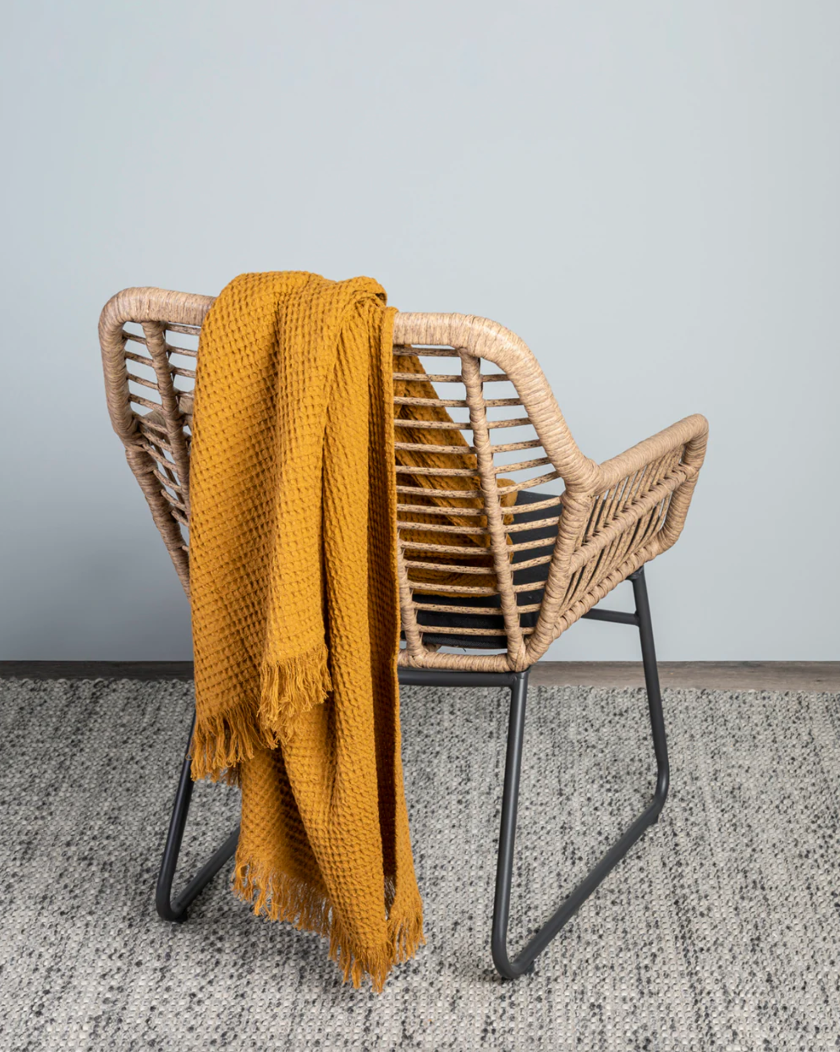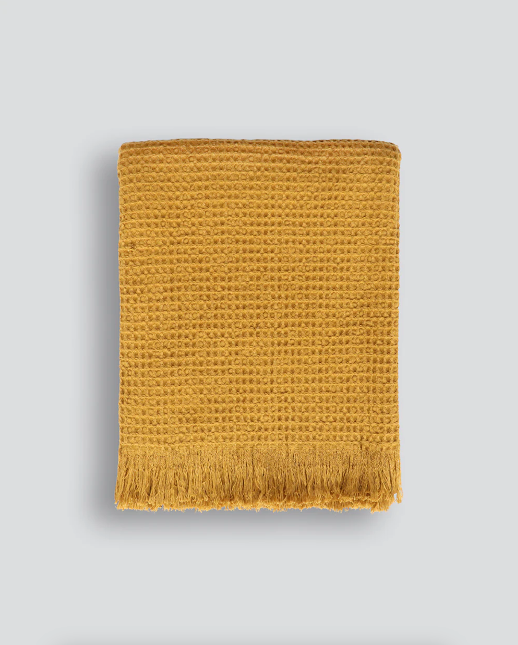 A stunningly soft, relaxed, stonewashed cotton waffle throw in a rich ochre shade.