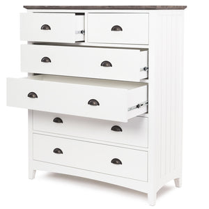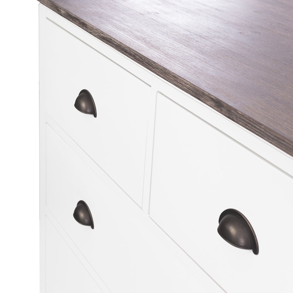 Construction Solid hardwood Acacia framing and MDF panels coated in a durable satin smooth white finish. Quality drawer runners and brushed traditional "cup style" handles.