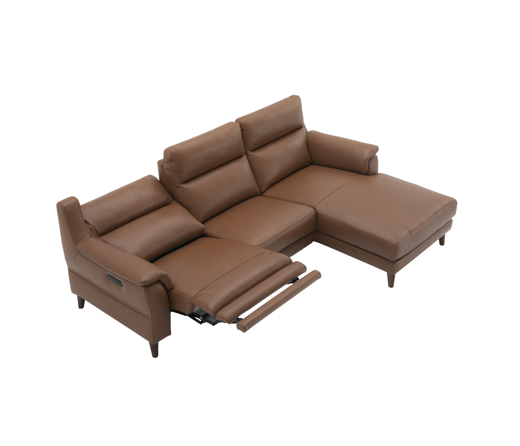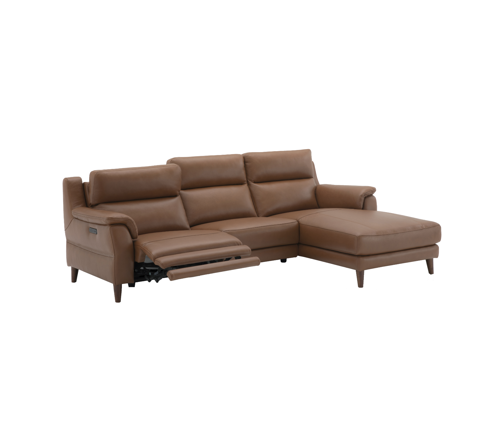 Unwind in style with the Sereno. Effortlessly combining sophisticated mid-century style, appealing proportions and seamlessly integrated power functionality, to create a family friendly sofa that caters for all. Personalise your reclined seating position by the touch of a button or lounge back on the chaise and pop your feet up. Set on high, tapered wooden legs with a supportive high back and cushioned arms, the Sereno delivers on premium comfort and style – The perfect spot for some afternoon downtime.
