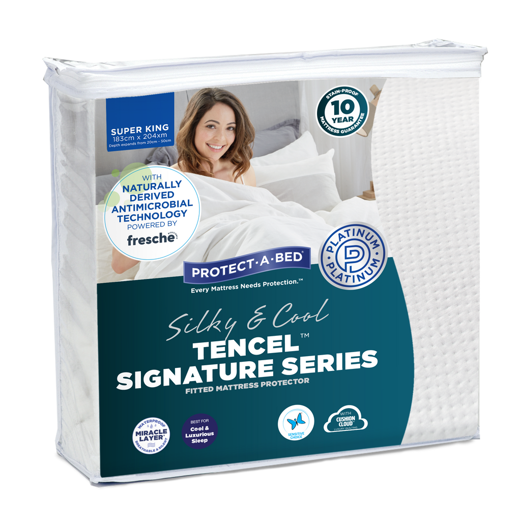 Protect- A-Bed Signature Series protectors provides a silky cool and comfortable sleep with the added benefit of Cushion Cloud quilted filling for a more luxurious feel. When combined with the unique Miracle Layer™ to draws moisture away from its surface, it creates the cleanest, driest and smoothest sleeping surface possible.