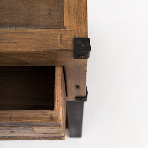 Construction Solid recycled timber certified by the Rainforest Alliance and FSC approved. Crafted using traditional methods of joinery with leather capped corners and drawer pulls.